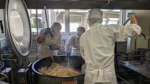 給食アンケートのスープ・汁物部門で2位になったのは「ビーフシチュー」でした。ビーフシチューには、トマトケチャップ、ウスターソース、ローリエ、オールスパイス、しょうゆ、塩、黒こしょうなど、いろいろな調味料が入っています。また、玉ねぎをしっかりいためたり、ブラウンルウを作ったり、おいしく作る工夫がつまっています。調理さんの技術はすごいですね!