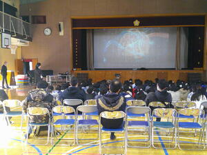 最後なので、14:00から全体会として体育館でお話をさせていただきました。