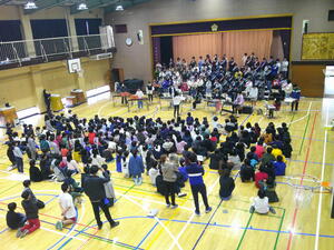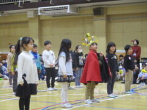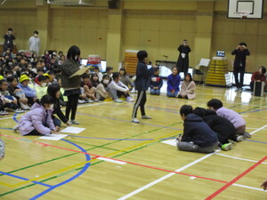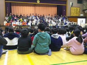きのう21日の3・4校時に体育館で行われた6年生を送る会。