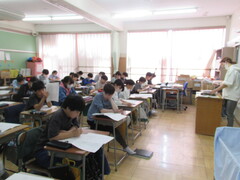 子供たちにとって、午前中いっぱい(6年生は5時間目も)かけて取り組む長い闘いですが、静かに、集中して取り組んでいます。