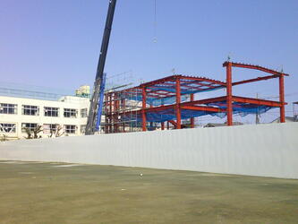 また、新校舎の工事も勢いよく進み、全体の形や大きさがイメージできるようになってきています。ごらんのとおり、けっこう大きいです。