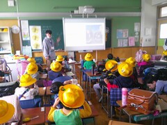 今日から1学期の給食が始まりました。昨日入学した1年生も今日から給食開始です。3時間目には、給食についてのお話もしました。