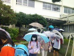 今日は一斉下校訓練を行いました。雨が降る中ですが、安全に気を付けながら下校する様子が見られました。