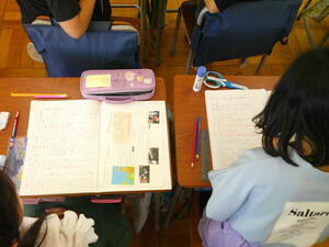 こどもたちが熱心に資料を調べたり、わかったことを積極的に発表したりしていました。ノートの書きぶりも大変立派で、感心しました。