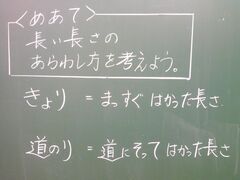 3年生は長さの学習をしています。今日の学習のめあては2つありました。一つ目は「きょり」と「道のり」の違いを知ること、もう一つは「1000メートルを1キロメートルという」ことを知ることです。