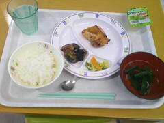 給食の献立:しちこくごはん、さけのねぎソースがけ、きりぼし大根のにもの、高野豆腐のみそしる、牛乳