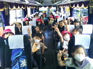 5年生の伊豆高原移動教室の速報です。朝早くからお見送りくださった皆様、ありがとうございました。