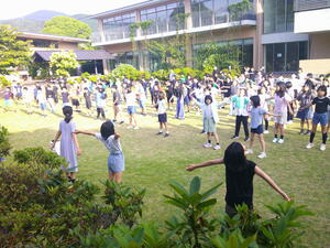 昼食後、さらに歩いて伊豆高原学園に到着。今年はなんと、ハイキングに参加した全員が自力で踏破しました!よくがんばった!