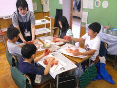とても活気があり、にぎやかなコミュニケーションが繰り広げられました。いっしょうけんめいできましたね。「4回もお話ができた」とうれしそうに教えてくれる子もいました。