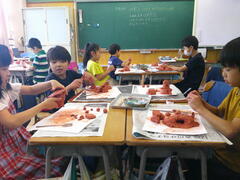 3年生がうれしそうにねん土を使って何かを作っていました。しかし見慣れたねん土とちょっと違います。赤土のような感じの「土ねん土」です。