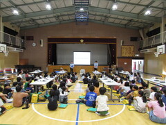 6月に入りました。1学期も後半です。今日は、2・3・5年生が体育館に集まり対面参加でした。