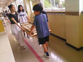 久しぶりにたくさんの児童が登校。明るく活気が感じられました。6年生はさっそく、各学年・学級の作品を展示するための長机を運ぶ仕事を手伝ってくれました。うれしいです、ありがとう。