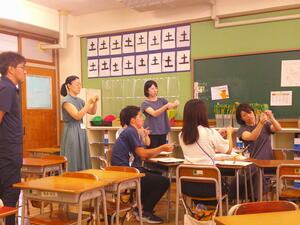 教室では、友達や先生たちとの会話もはずんでいました。