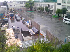 2学期が始まる前にできる限り進めようと、今日も校舎内外で粛々と工事が進められています。作業に当たってくださっている皆様、ありがとうございます。雨の中、お気をつけて。