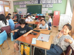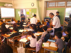 昨日4日の外国語の授業。5年3組の教室からにぎやかな声が聞こえてくるので、のぞいてみると…