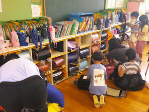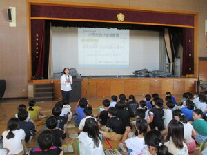 こどもたちは、司書の先生の読み聞かせをいつも集中して聞いています。