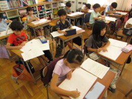 3年生になってから始まった書写ですが、自分たちで素早く完璧に準備を終わらせられるようになりました。