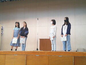 また、表彰も行いました、「第10回月見まつり俳句コンテスト」で入選した4人の子どもたちが紹介され、記念品が渡されました。おめでとうございます!