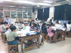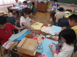 写真は土曜理科教室「家の模型を作ろう」の様子です。3年生以上のたくさんのこどもたちが参加していました。