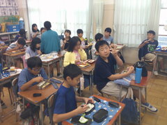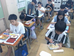 お弁当のご準備もありがとうございます。こどもたちはとてもおいしそうに食べています。ついつい友達のお弁当の中身が気になる子も...とてもよいスタートを切れている6年生でした!