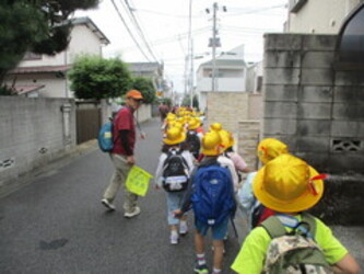 1年生が本門寺公園へ遠足に行きました。涼しい気温の中でしたが、こどもたちは汗をかきながら一生懸命歩いていました。交通ルールをしっかりと守る姿はとても立派でした。