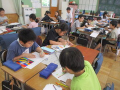 スクールサポートの「夏のわくわく体験」パンフレット作成に、たくさんの保護者有志の方々が協力してくださいました。