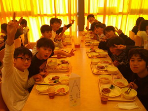 朝は元気今ひとつと感じたこどもたちでしたが、先ほどバスが高速道路に入ってバスレクが始まると、だいぶリラックスして盛り上がってきました。大丈夫そうですね。