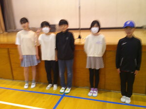今日の全校朝会は、1・5・6年生が体育館に集まりました。2・3・4年生はリモート参加です。