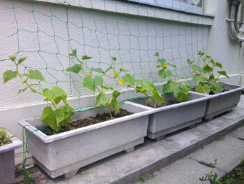 これまでも2度ほどこの「馬込の日々」でお世話係のことをお伝えしましたが、その後もとても熱心なので、勝手に「胡瓜 育て隊」と命名させてもらいました。それではその雄姿をご覧あれ!