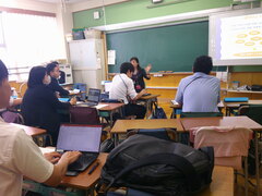 授業終了後に体育館での全体会、教室に分かれての分科会を行い、それぞれの授業についてのコメントなどもいただきました。