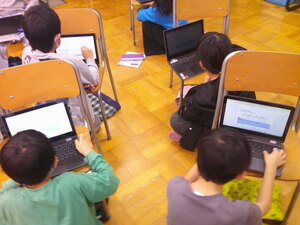 土曜英語教室の様子です。様々な学年のこどもたちが一緒になって、楽しく外国語や外国文化に触れることができます。