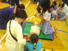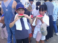 こどもたちも含め、多くの住民の方々の参加がありました。様々な体験訓練のほか、おたのしみのスイカ割りもありました。