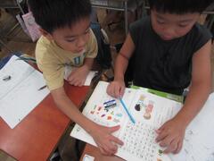 友達と協力してたくさんの言葉を見つけたこどもたち。