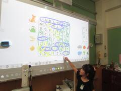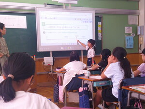 わかりやすい授業デザインと電子黒板の効果的活用等により、こどもたちの学習意欲を高めていました。