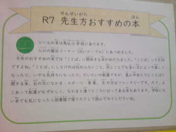 9月3日(水曜)馬込小学校の先生たちがおすすめする本