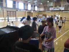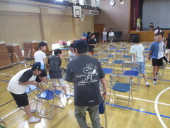体育館の会場準備(椅子運び)は5年生が自分たちで行いました。壇上から椅子を下す役、運ぶ役、揃える役など、分担しながらあっという間に準備を終えることができました。