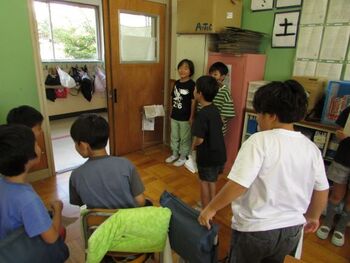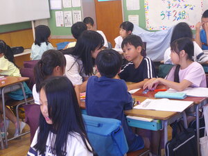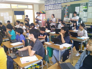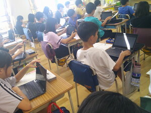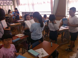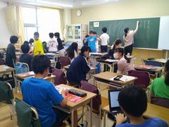 8時30分からの始業式には、全クラスが時刻どおりに集合することができ、良いスタートが切れました。その後、各クラスでは夏休みの宿題を集めたり、思い出を伝え合ったり、席替えをしたり、新学期の係活動を決めたり...様々な活動に取り組んでいました。