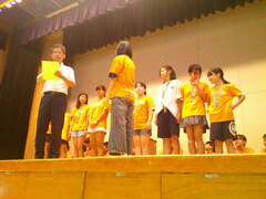 集会委員会のこどもたちが企画・運営する「幕の間を通るのは何でしょう?」集会です。