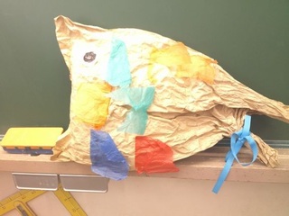 2年生は図工の学習で大きなマスコットを作っていたのです。