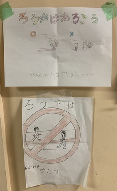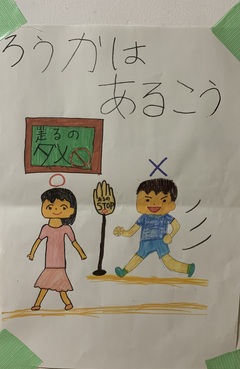 「静かに歩くと、けがを防げるね。」