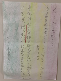 こどもたちは、ポスターを作って、校内の全ての学年の廊下に貼ったり、お昼の放送で呼びかけたりして、みんなに意識してもらえるように工夫しています。
