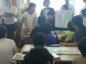 このシリーズはいろいろな教員、こどもたちの授業45分間をじっくり観察し、お知らせするものです。2学期のトップバッターは、5校時に行われた3年3組の総合的な学習の時間の様子です。本校の校内研究の一環として広く他の教員に公開・提案する授業でもあります。