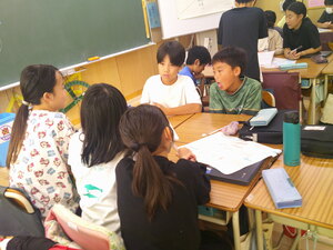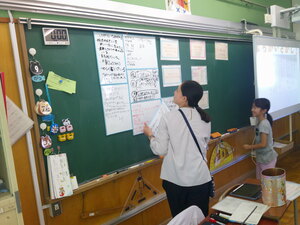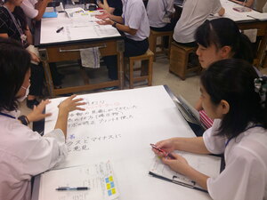 今日の学習では、教科書にある例文を読み、相手や目的を考えながら批正していくことです。まずは自分で考え、次に小グループで検討、そして小グループから出されたポイントを全体で確かめました。