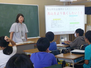 学習するきっかけとなったこと、登下校中に道に落ちているゴミを見て予想したこと、実際に公園などへ行きゴミを確認したことなど、馬込の地域をよりよくするために、地域の方へ呼びかけて協力してもらおうと考えて学習を進めてきました。地域の方からも、もっとゴミを少なくしていきたいと発表を通して思っていただき、子どもたちの考えを伝えることができました。