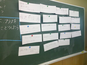 それを参考にしながら、各グループの思いを具体的な企画にすることを目指してグループで、そしてペアグループで(メンバーを入れ替え)、話し合いました。