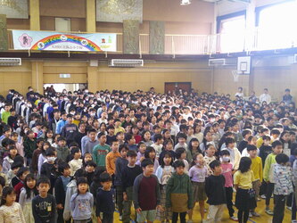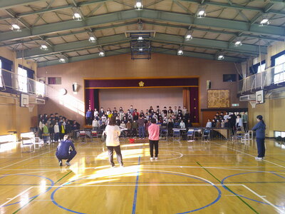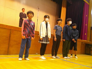 気持ち高まる音楽会をさらに盛り上げようと、今朝は全学年が体育館に集まって集会が行われました。
