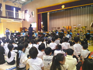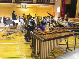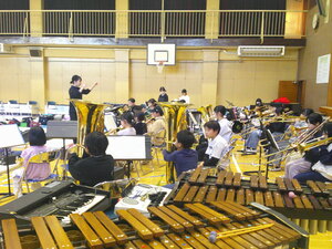 放課後には、金管バンドも体育館で練習しました。いつもの音楽室と違い、音が遠くに響く感覚を味わうことができたでしょう。