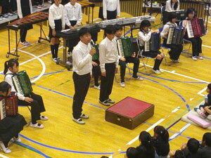 「心をひとつに すてきな音色を 楽しく奏でよう」のスローガンのもと、いよいよ音楽会が始まりました。今日は、児童鑑賞日です。がんばって練習してきた成果を、互いに発表し合う日です。
