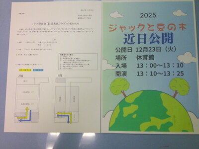 このような形は初めての試みでしたが、保護者の方々を含めてびっくりするほどたくさんのお客様に来場していただき、「ジャックと豆の木」(劇団馬込バージョン)を発表することができました。
