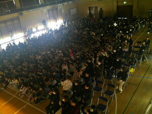 終業式の後、生活指導の先生たちからは、冬休みの望ましい生活についてお話がありました。健康・安全に過ごすために気を付けなければならないポイントが紹介されました。